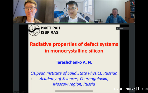 为拓宽师生国际学术视野,追踪学科前沿动态,加强国际学术交流合作,5月27日下午,物理与电子工程学院邀请俄罗斯科学院固体物理研究院学术委员会秘书、副院长、中俄国际“功能材料”联合实验室俄方成员阿·尼·捷列先科教授在线上做“单晶硅中缺陷系统的辐射特性”的学术报告。报告会由物理与电子工程学院副院长孙明烨主持,东方语言学院教师王兴华翻译,物理与电子工程学院60余名师生代表参加。